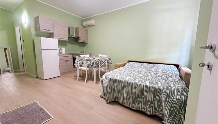 Cozy studio apartment recently renovated, located in the heart of Rivoltella’s historic centre. The private entrance ensures maximum privacy and convenience.